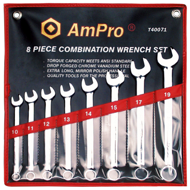 Приобрести T40071 Набор ключей комбинированных 8 предметов (10-19 мм) от компании AmPro (Тайвань) из раздела Наборы ключей по цене 1 861 рублей.