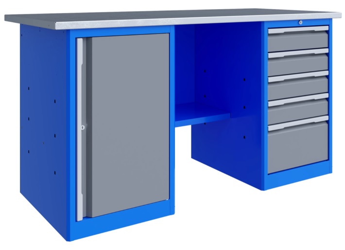 Цвет: корпус - RAL5015 (синий), ящики - RAL7037 (серый), ручки ящиков - RAL9006 (серый).