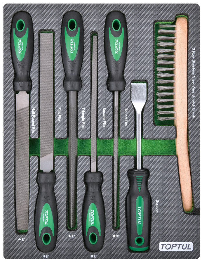 Набор инструментов, напильники, шабер и щетка, 7 пр. в мягком ложементе TOPTUL GEB0705 купить в Санкт-Петербурге и других городах России