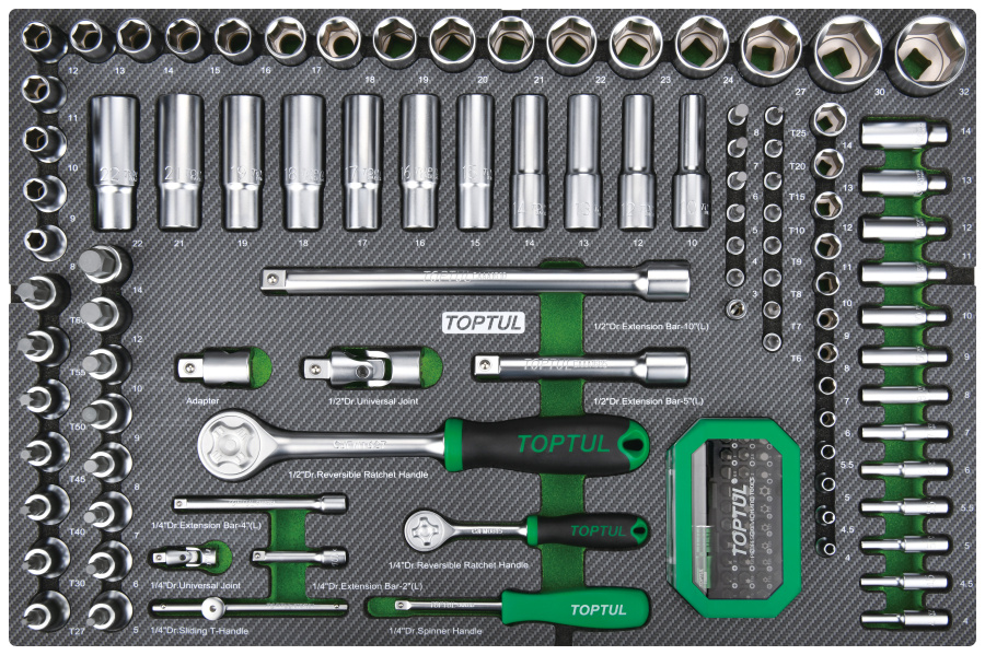 Набор головок и аксессуаров 1/4" и 1/2" 6-гр.,133 пр. в мягком ложементе TOPTUL GEDD348 купить в Санкт-Петербурге и других городах России
