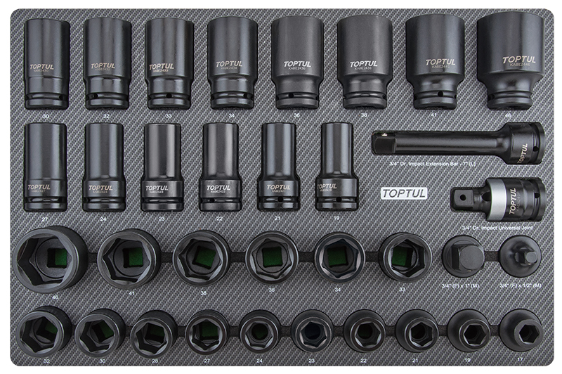 Набор ударных головок 3/4'' 17-46 мм короткие и длинные, 34 пр. в мягком ложементе (D) TOPTUL купить в Санкт-Петербурге и других городах России