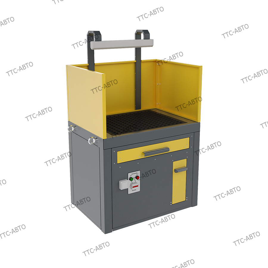 В столешницу встраивается колосниковая решётка из чугуна и ящик для сбора окалины и других продуктов сварки.